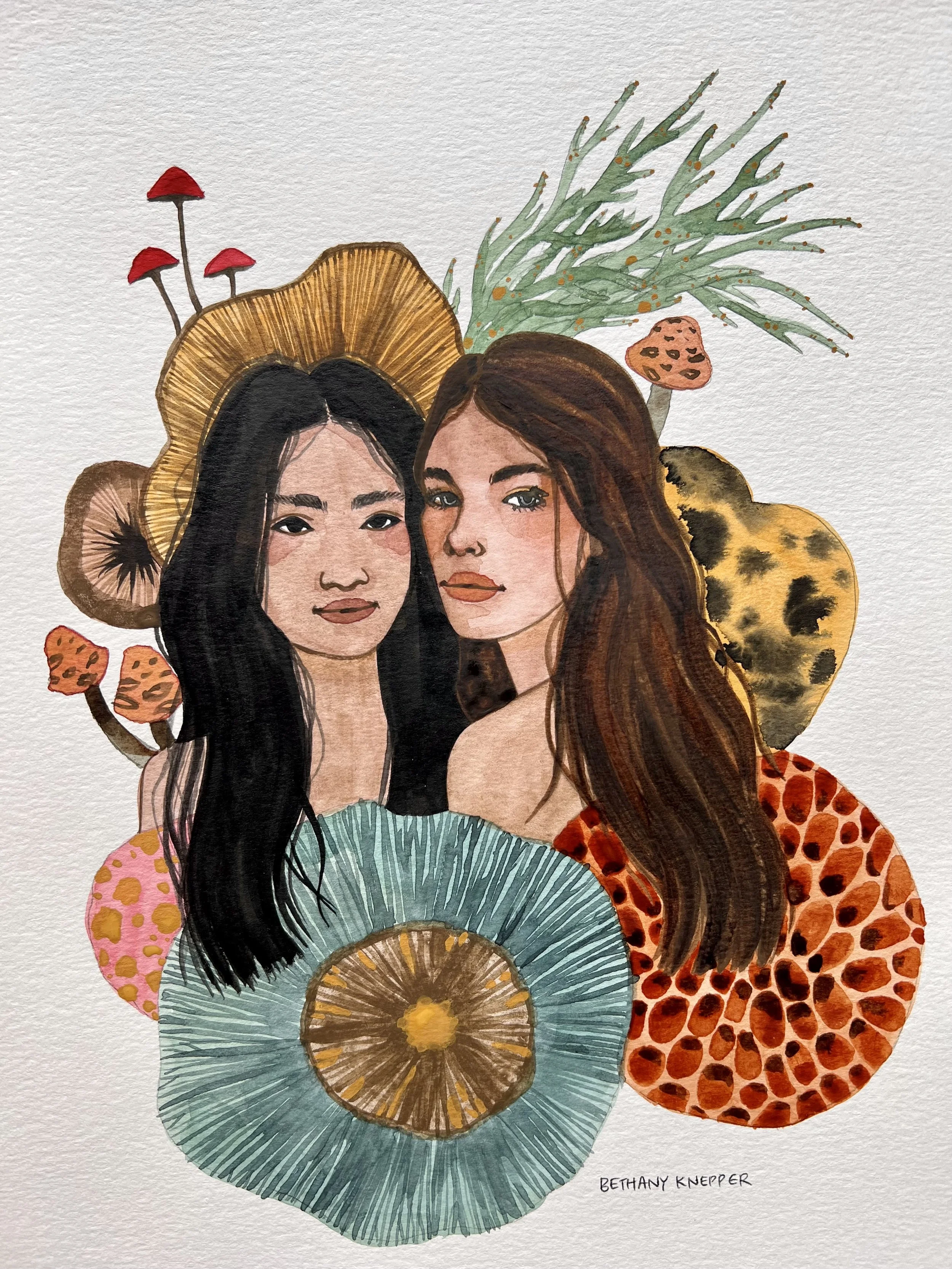 Watercolor on cradled birch wood panel, 18 x 1 x 24 inches 🌟Announcement 🌟All the paintings from the CLEANSE series are now available in my shop! The water in these paintings is a metaphor for a large, powerful, unknowable force that surrounds us. Read more about the story behind the paintings, link in my 🍒Excited to share some new products with you! I’ve opened a Society6 shop, where I’ve created home goods featuring my art (throw pillows, hand towels, art prints). They’re having a big sale on wall art for #memorialday so go have a Really enjoyed painting this portrait of these beautiful sisters as a Mother’s Day gift for their mom ❤️#commission #familyportrait Studio view today 🌞 Found the time to organize my studio, now to find time to paint! We’ve moved into a bigger place and I’ve upgraded my studio space from half of our dining room table to half of a huge room and I’m giddy about it Even though I usually only get 1-2 hours to paint each day, the canvases are starting to pile up in the new studio with a new series. I’ll be showing more soon but for now I feel I have about 12 that are all still in progress! I think it’ Simple shapes in the studio these days Heartbroken and sick to my stomach hearing what happened to #ahmaudarbery 💔Heartbroken because he was killed back in February, 2 days before my birthday, and the men who killed him are just NOW being arrested. 💔Heartbroken because I know this isn&r Portrait of my sister, acrylic and watercolor on yupo paper “Seen” 18 x 24 inches, watercolor and acrylic on paper. This one was very fun to make because of the contrast of the delicate watercolor texture and the heavy bulky acrylic shapes for their hair. And because I love painting faces 🦧 “Generous Portions #3”